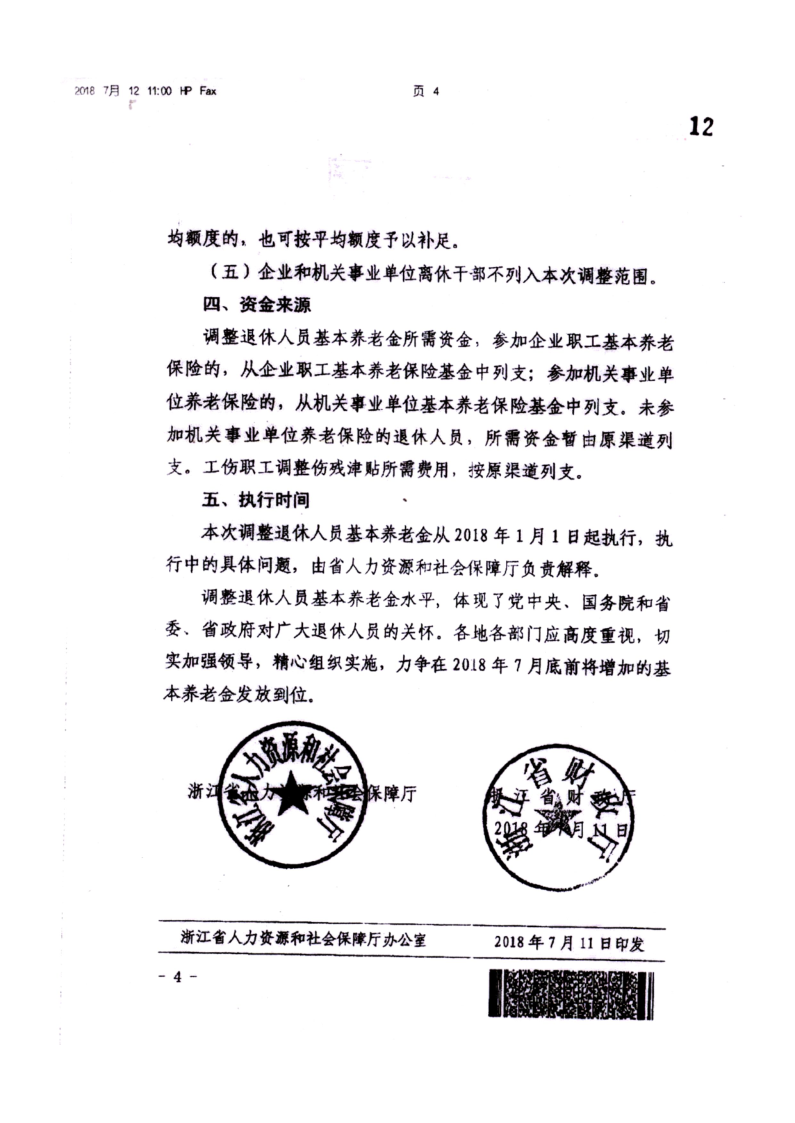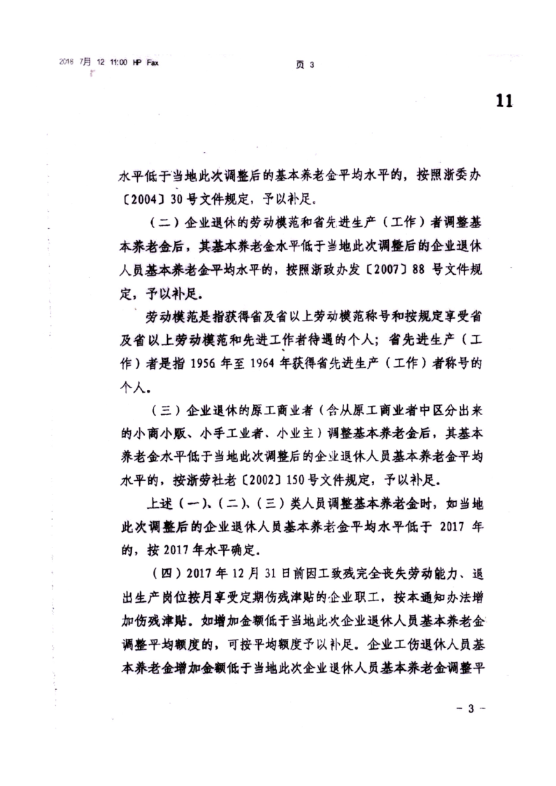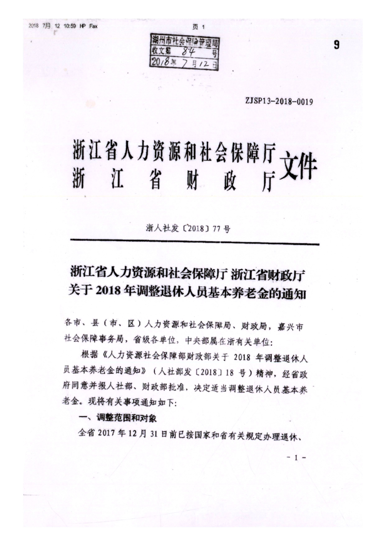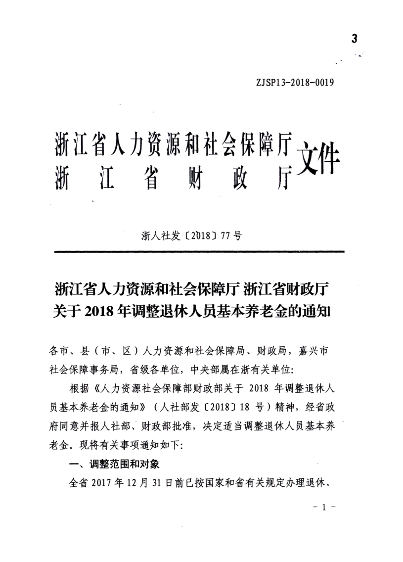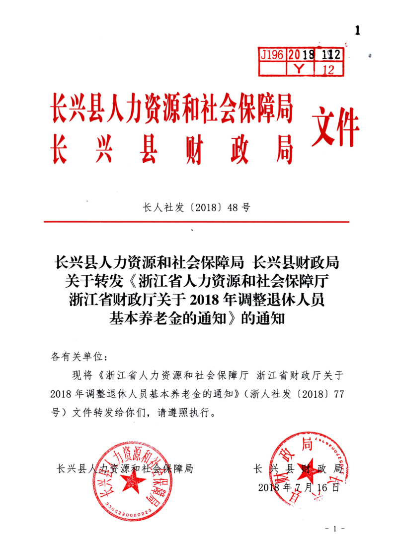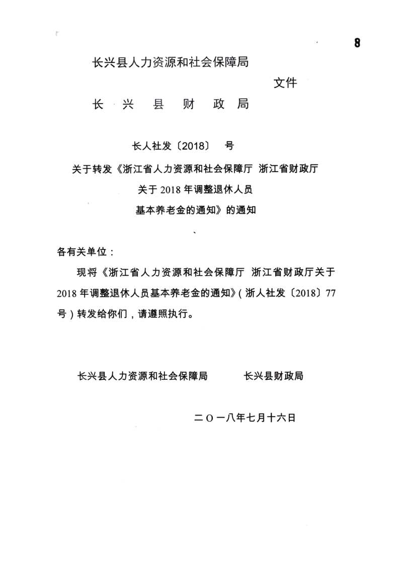 关于转发《浙江省人力资源和社会保障厅浙江省财政厅关于2018年调整退休人员基本养老金的通知》的通知