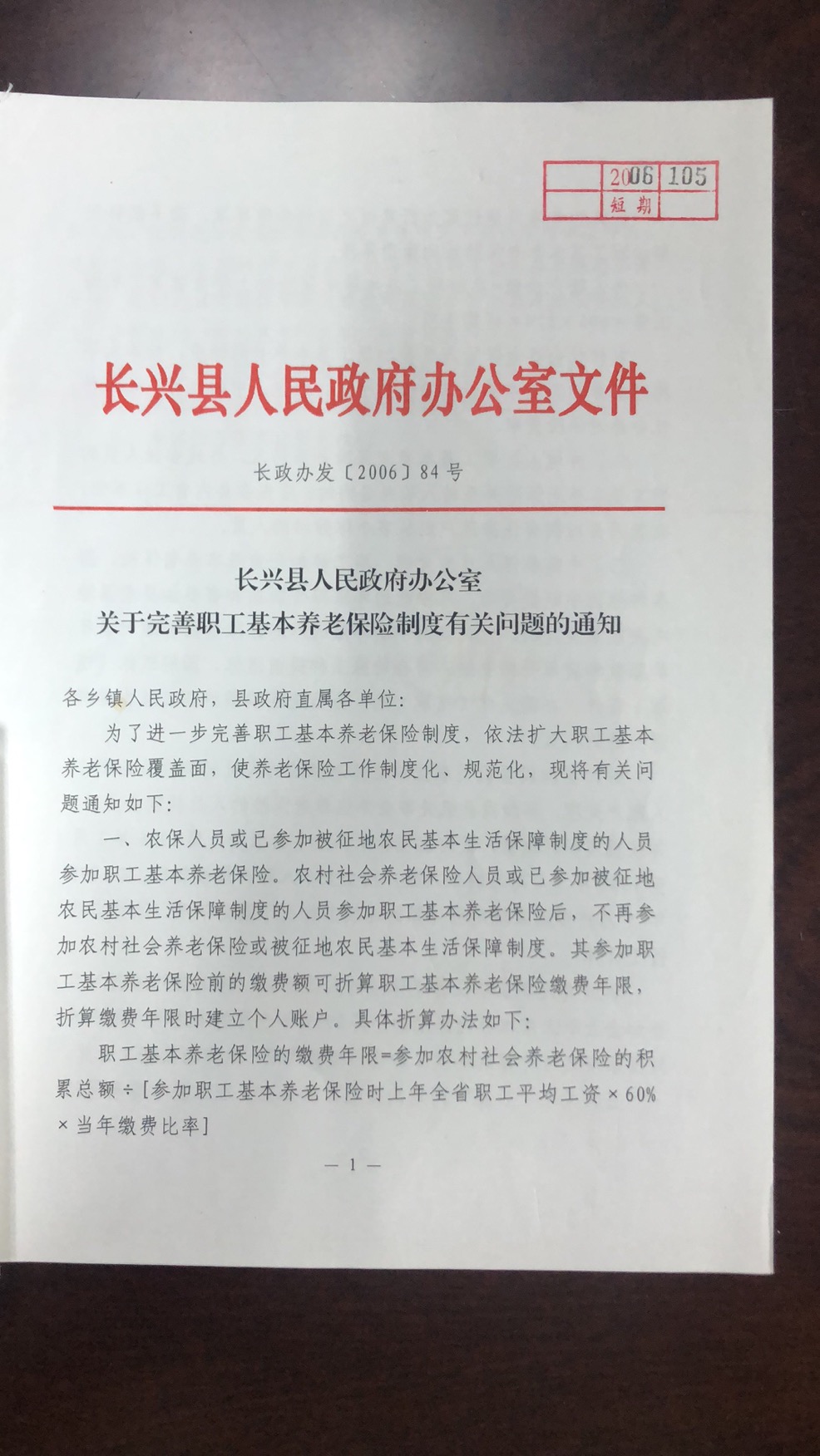 长政办发〔2006〕84号 长兴县人民政府办公室关于完善职工基本养老保险制度有关问题的通知