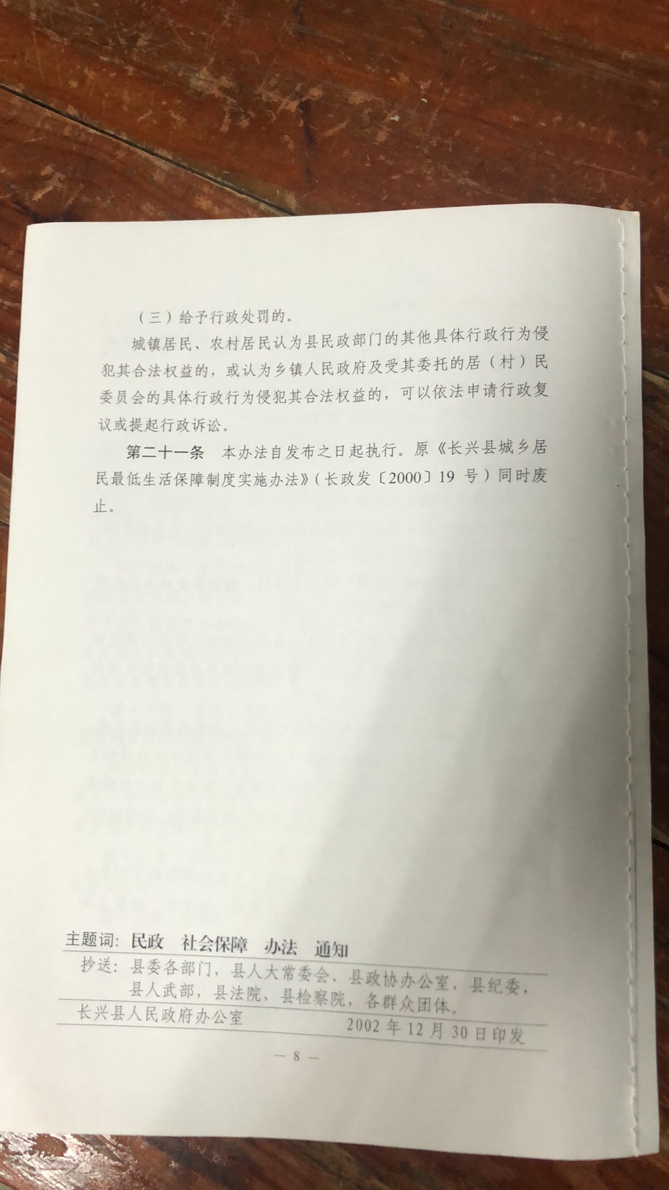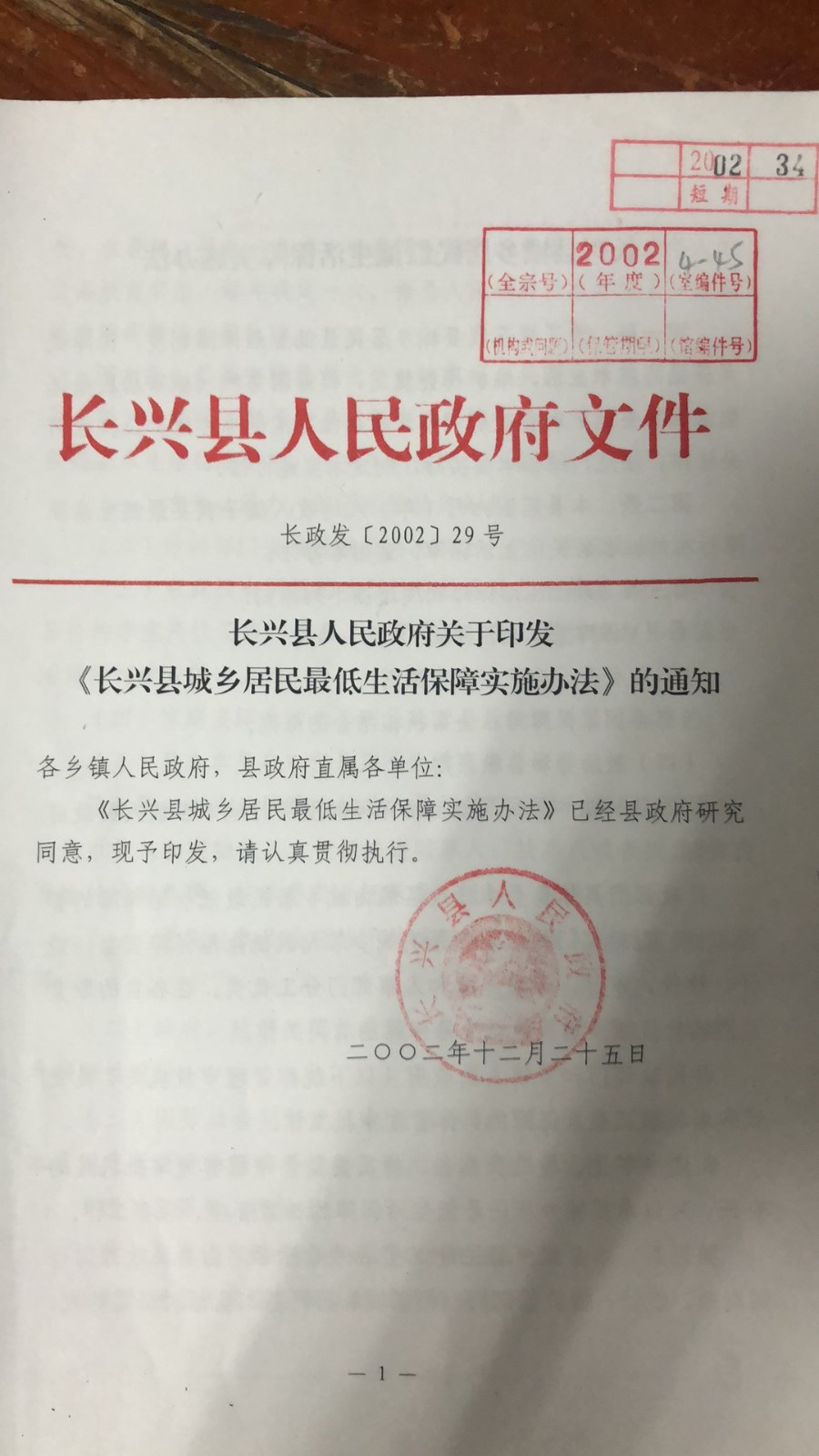 长政发〔2002〕29号 长兴县人民政府关于印发《长兴县城乡居民最低生活保障实施办法》的通知
