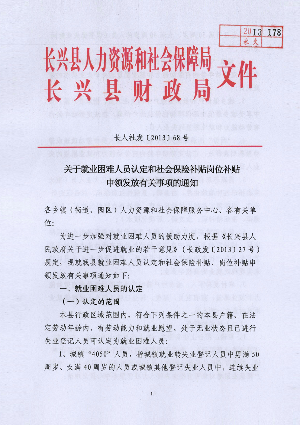 关于就业困难人员认定和社会保险补贴岗位补贴申领发放有关事项的通知