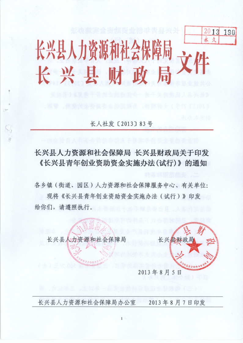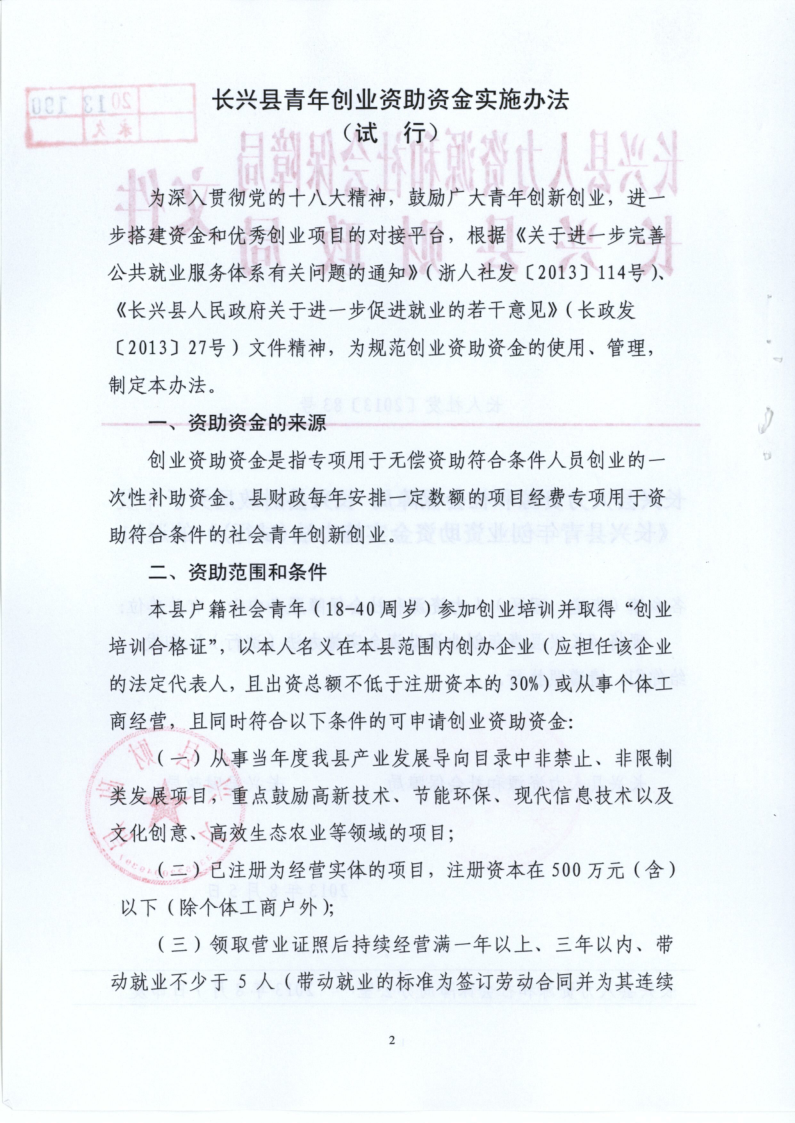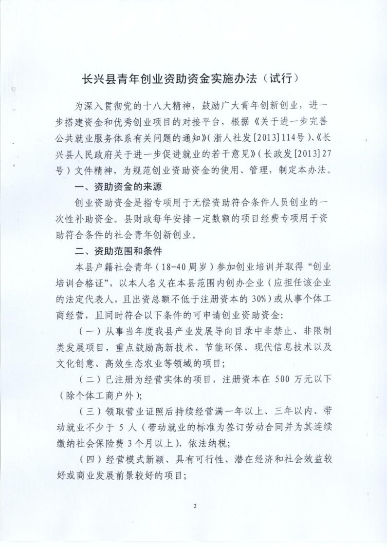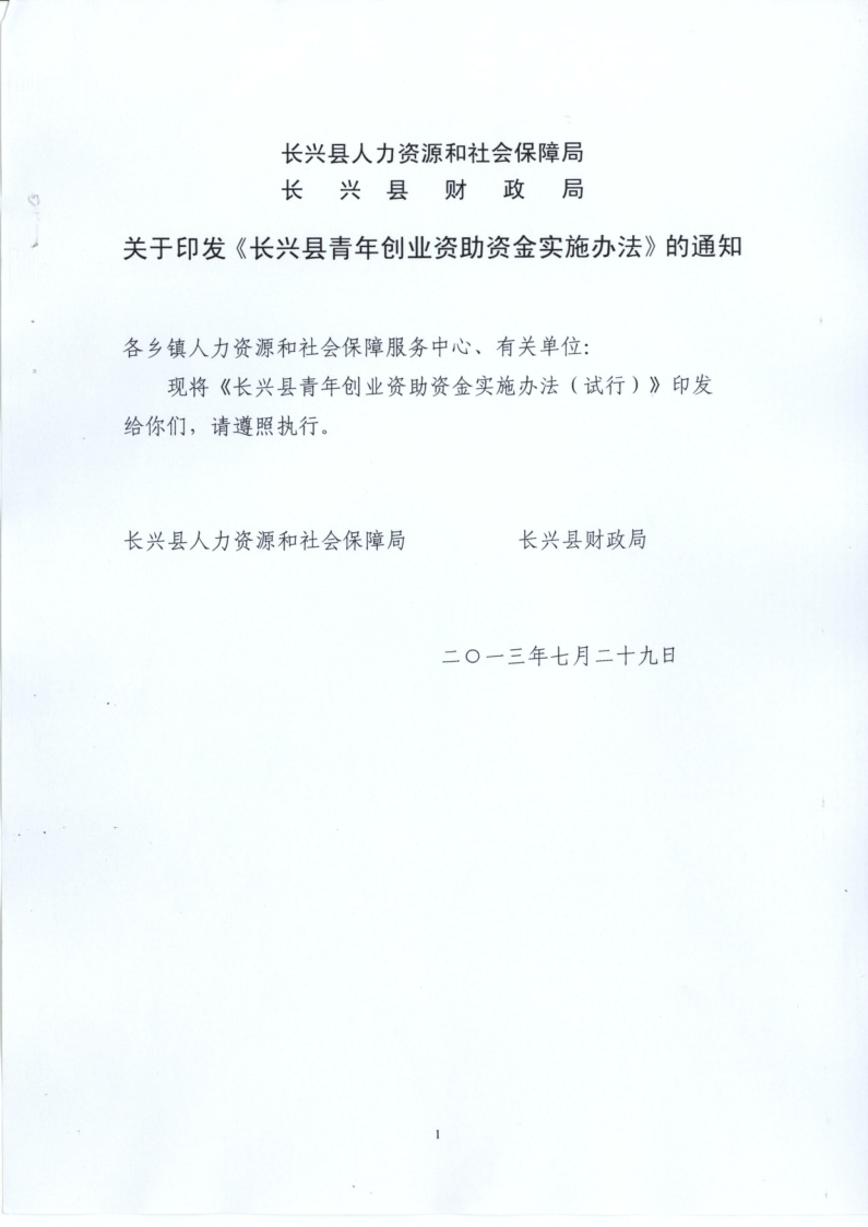 关于印发《长兴县青年创业资助资金实施办法(试行)》的通知