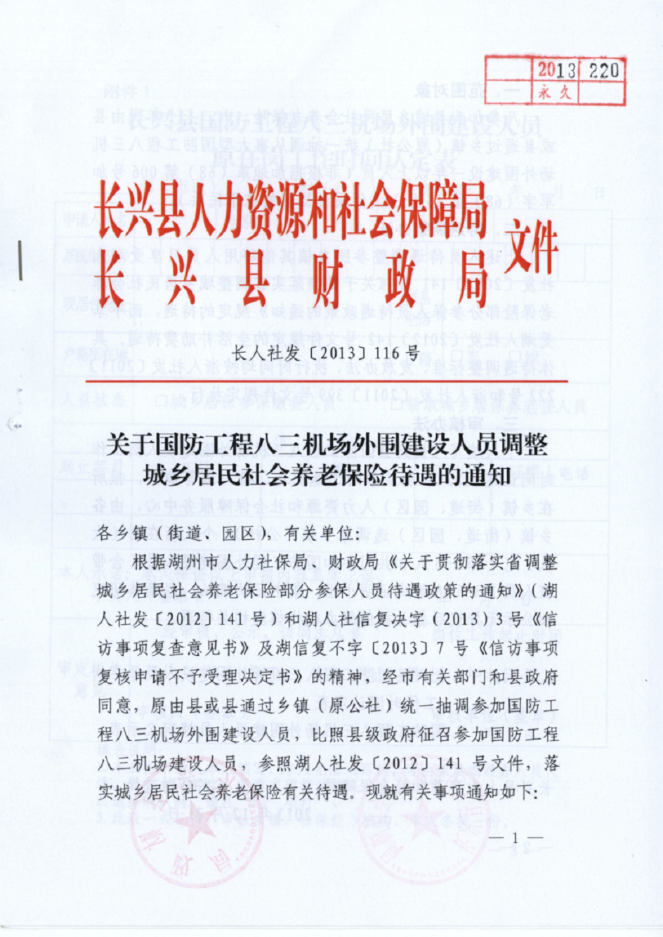 关于国防工程八三机场外围建设人员调整城乡居民社会养老保险待遇的通知